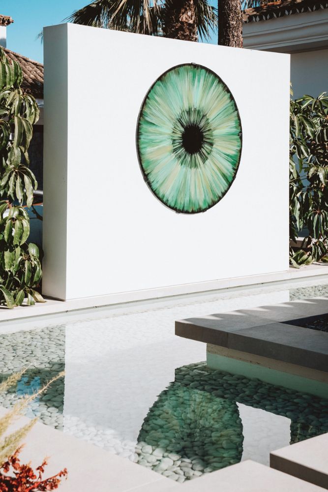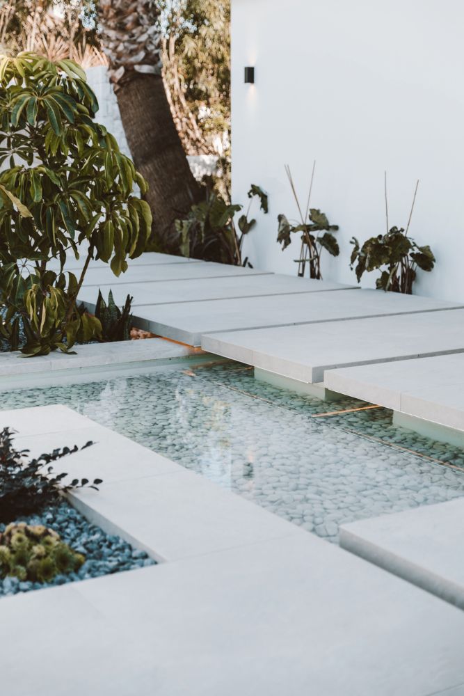 Thoughtfully designed outdoor spaces complete the home. A water feature and soft waterfall lead up to the front door, setting a calm and welcoming tone. The pool lines up perfectly with the golf course, making the most of the views and sense of openness.