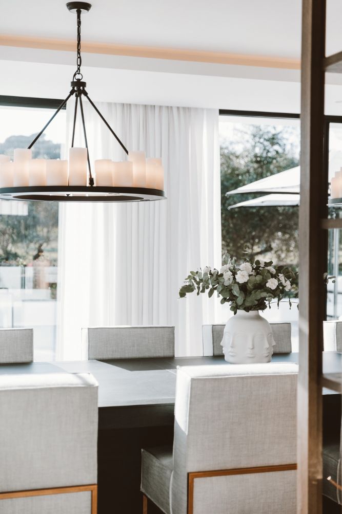 Set on the golf front, this bold, contemporary villa is spread across two levels, with high ceilings and uninterrupted views of the course. The home has a distinctly masculine feel, with a rich palette of dark materials and sharp architectural lines softened by natural finishes throughout.